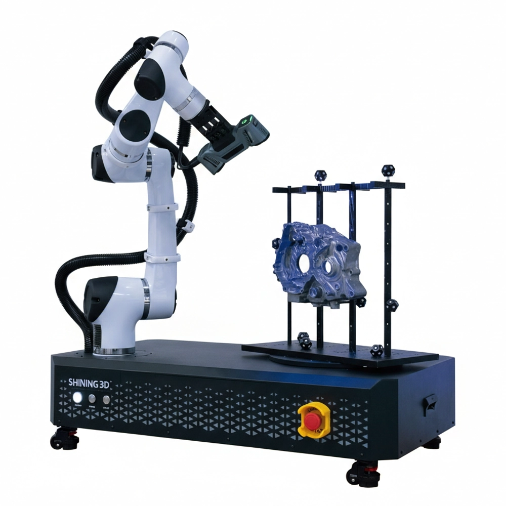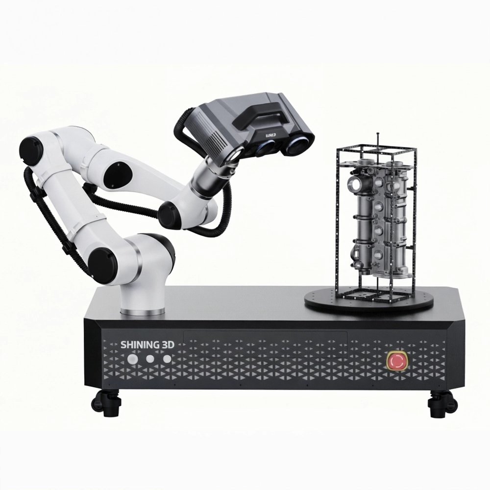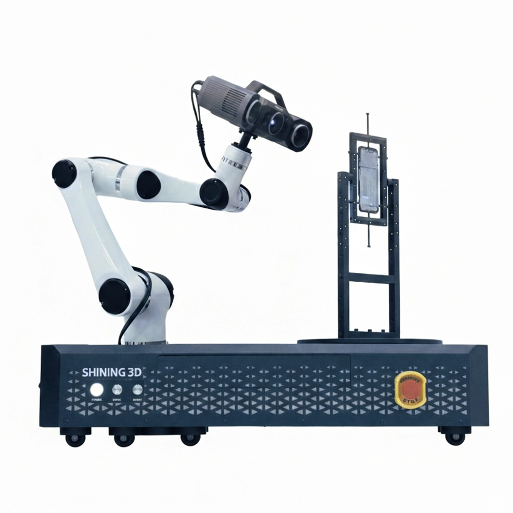 SHINING 3D Automation Solution (RobotScan Series) is an end-to-end automated 3D scanning and inspection system that integrates advanced metrology scanners, robotic arms, controllers, and turntables to deliver highly efficient, repeatable, and accurate 3D digitization for modern production and quality control.